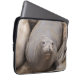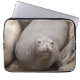 Auf einem nahen Foto sind zwei Elefanten-Siegel aufgezeichnet, die auf einem Sandstrand zusammengepfercht sind. Im Vordergrund steht ein Siegel mit dunkelgrauem Mantel, dessen große, dunkle Augen direkt auf die Kamera schauen. Die Schnauze ist leicht zerknittert, und auf dem Fell ist ein kleiner Sand erkennbar. Das Siegel ist zwischen zwei weiteren Siegeln eingebettet, eines mit einem leichteren grauen Mantel und das andere mit einem dunkelgrauen Mantel.