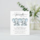 Eine niedliche und preisgünstige Duscheinladung mit "Two Sweet Little Peanuts Are On Your Way", die in einer Mischung aus sanfter, moderner Typografie und stilvollem Drehbuch geschrieben ist, und zwei pastellblauen Aquarellen von Babyelefanten. Personalisieren Sie den Namen der künftigen Mutter und die virtuellen Duschdetails in schlichter grauer Typografie.