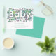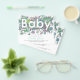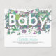 Diese handgezeichnete, lustige Dusche Aquarell Gender-neutrale Einladung in Pastellfarben zeigt all das bezaubernde Chaos, das ein neuer Junge oder ein neues Mädchen mit kuscheligen Spielzeug, Elefanten, Giraffen, Bären, Wäsche, Babykleidung, Windeln und viel Waschen mit sich bringt und das Wort BABY Typografie im negativen Raum schafft. Eine lustige blau, grün, braun und gelb leicht zu personalisieren Einladung. Original-Kunstwerk von Catherine Sweetman