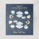 Diese niedliche und skurrile Platzkarte zeigt einen bezaubernden Babyelefanten in einer Goldkrone, der auf einer Wolke mit fallenden Sternen sitzt. Im Hintergrund ist ein sterniger Nachthimmel und ein Halbmond. Der Text kombiniert handgeschriebene Skripte mit serifenlosen Schriftart für ein stilvolles und modernes Design. Das ist perfekt für eine Babydusche.