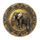 Ein majestätischer, schwarzer Elefant, symbolisiert Stärke und Weisheit, wird vor einem Hintergrund von aufwändigen goldenen Zierrahmen dargestellt, der ein Gefühl von Großzügigkeit und Eleganz ausstrahlt. Der Kontrast zwischen der dunklen Silhouette des Elefanten und den schimmernden goldenen Details des Rahmens schafft ein visuell auffallendes und faszinierendes Bild.