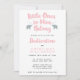Une mignonne invitation typographique pour le dévouement de votre petite fille avec une ligne de l'hymne populaire Jésus m'aime. L'expression "Les petits à Lui appartiennent" est écrite en police de caractères de pinceau rose, flanquée de deux éléphants gris. Cette invitation offre un espace pour les détails de la cérémonie et de la réception.