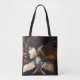 Eine schwarze haarige Elfe mit ihrem Drachenfreund und lila Schmetterling im Hintergrund aus Stein und Rot-Schwarz-Drachen Kacheln