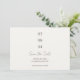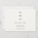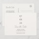 Schick schwarz-weiß Save the Date Postkarte. Diese minimalistische Schwarz-Weiß-Karte bietet ein zeitgenössisches Set von bräunlichen schwarzen Schriftart in fett und geschrieben, vor einem eleganten Elfenbeinhintergrund. Diese Chic-Karten sind in einer Farbauswahl erhältlich und lassen sich einfach mischen und mit der Erholung des stationären in der Kollektion übereinstimmen.