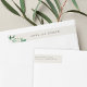 Elegante Rücksendeadressen-Aufkleber in Creme Elfenbein mit botanischen und weißen Blütenakzenten in grüner Aquarellfarbe stimmen sich mit unserer Greenhouse Hochzeitskollektion ab. Personalisieren Sie Ihre Namen auf der Rückseite und Ihre Rücksendeadresse auf der vorderen Umhüllung.