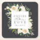 Unsere Hochzeitskollektion Ivory Bloom Aquarell mit zartem Aquarell, Eukalyptus-Blätter, grünem botanischem Blattwerk und Blume mit weißer und elfenbeiniger Tortur. In klassischer Schrift mit Akzenten kalligrafischer Schriften erscheint "Liebe bejubeln". Personalisieren Sie diese individuellen Untersetzer mit Ihren Initialen und Ihrem Hochzeitstermin, oder Ihrer Wahl des benutzerdefinierten Textes.