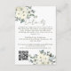Fügen Sie Ihrer Hochzeitssuite eine Touch von elegantem Charme mit dieser Ivory Watercolor Floral Wedding Enclosure Card hinzu. Das Design ist mit weicher Elfenbein- und Weißwasserfarbe, blühender und zarter Vegetation geschmückt und in den oberen und unteren rechten Ecken schön angeordnet. Oben steht "Details" in eleganter moderner schläfengrüner Kalligraphie, gefolgt von Ihren individuellen Hochzeitsdetails in passender moderner Schrift. Ein scannbarer QR-Code befindet sich unten links für den einfachen Zugang zu Ihrer Hochzeitsseite, Ihrem UAWG oder Ihrer Anfahrtsbeschreibung. Diese Karte eignet sich ideal für rustikale Hochzeiten, Landschaften, Gartenveranstaltungen oder Hochzeiten mit Blumenmuster. Sie ist zeitlos und funktionell zugleich.
