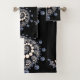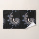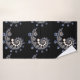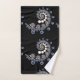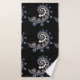 Elfenbeinperlen und blaue Perlenspiralen in einer Spirale auf einem schwarzen Hintergrund.