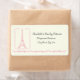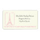Paris Hochzeit rosa Eiffelturm Elfenbeinlabel. Ein elegantes Design voller Klasse und Finesse, mit dem Eiffelturm in Rosa in einer feuchten Grenze auf Elfenbeinhintergrund.