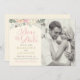 Diese elegante Hochzeit im bohischen Stil bewahrt das Datteldesign mit romantischen Blume, botanischen Blätter und rustikalen Vogelfedern-Akzenten. Personalisieren Sie Ihre Veranstaltung mit einem eigenen Text für Ihre große Veranstaltung und mit einem beliebten Verlobung-Foto. Die sanften Farbtöne sind in Rosa, Pfirsich, Creme, Grün, Grau und Gold gehalten. Ideal für einen Frühlings- oder Sommeraufenthalt.