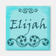 Personalisiert mit dem Namen Elijah auf einem blauen Hintergrund mit Scrollarbeit.