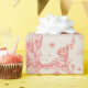 Coral Rouge sur un arrière - plan crème aux motifs naturels de bois dans ce style traditionnel de toile vintage française. Une paire de wapitis, un chêne ancien, une parcelle de verdures fraîches de la ferme. Un hibou et une couronne complètent cette scène provinciale.