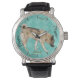 Uhr, Vintage Männeruhr mit schwarzem Lederarmband