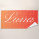 Wiederholte verblasste gelbe Texthandschrift Luna Namensmuster hinter dem großen hellgrauen weißen Namen über hellrot bis orange Farbverlauf