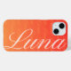 Wiederholte verblasste gelbe Texthandschrift Luna Namensmuster hinter dem großen hellgrauen weißen Namen über hellrot bis orange Farbverlauf