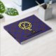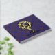 Clan Elliot Wappen Abzeichen umgeben von einem Gurt und Schnallen über modernen tartan Hintergrund. Benutzerdefinierter Vorder-, Rücken- und Rückentext.