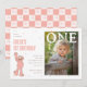 Celebrate a sweet first milestone with this Elmo-inspired birthday design featuring a soft pink checkerboard background and playful confetti sprinkled throughout. The blush and white pattern creates a cheerful, modern backdrop while subtle character line art woven into the checks adds an extra touch of Sesame Street charm.