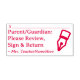 "Eltern/Vormund: Bitte überprüfen, unterzeichnen u Permastempel