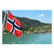 Photographie du drapeau norvégien sur un ferry de voiture entre Solvorn et Urnes sur un fjord en Norvège.