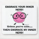 Ein Design für alle Nerd da draußen (wie ich!)! "EMBRACE DEINEN NERD! Wenn du nicht niedlich bist.... DANN EMBRACE MEIN INNER NERD!" Verteilen Sie die Nerd-Liebe mit diesem niedlichen, lustigen und absolut phantastischen Design! 'Innerer Nerd' handgezeichnet und digital gefärbt. Copyright 2013 von Sunny