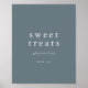 Dieses minimale staubige, blaue boho rustikale Plakatzeichen süßer Leckereien aus der Emelia-Kollektion ist perfekt für eine moderne Hochzeit oder ein modernes Event. Das minimalistische Design zeichnet sich durch eine einfache, aber stilvolle Typografie auf Schieferblau-grau mit einer Atmosphäre moderner Eleganz aus.