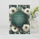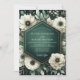 This enchanting design features a lush display of creamy anemone blooms and verdant foliage in a deep emerald hue. The artwork evokes a sense of romantic, natural elegance, perfect for a sophisticated affair.