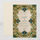 An opulent Islamic wedding design featuring a teal and gold arched frame inspired by mosque architecture and Persian artistry. With intricate floral motifs and geometric symmetry, this invitation exudes elegance, spirituality, and timeless cultural refinement — ideal for a luxurious Islamic wedding.