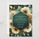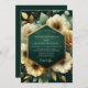 A rich tapestry of deep emerald green foliage surrounds creamy, off-white blooms and hints of gold accents. This design evokes a sense of luxurious, natural beauty with its dramatic floral arrangements and sophisticated color palette. The opulent botanical scene sets a mood of grand romance.