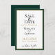Reich dunkle Smaragdfarben und goldene Ränder mit eleganter Typografie, Wedding Save the Date Card. Entworfen, um unsere Emerald Forest Collection zu ergänzen.