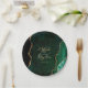 Diese eleganten, modernen Hochzeitszeitung-Teller verfügen über eine smaragdgrüne Aquarellfarbe mit Geodehintergrund, die mit Imitaten mit goldenem Glitzer bestickt ist. Personalisieren Sie sie mit den Namen des Ehepaares in goldfarbener Handschrift Kalligraphie über einen großen grünen Ampersand, und das Hochzeitstag in Kupferplatte Schriftart.