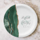 Diese eleganten, modernen Hochzeitsfeier-Teller zeichnen sich durch ein smaragdgrünes Aquarelldesign aus, das mit Imitaten mit goldenem Glitzer besticht. Passen Sie den grünen Text einfach auf einem weißen Hintergrund an, mit den Namen der Braut und des Bräutigams in handschriftlicher Kalligraphie über einen großen Ampersand.