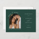 Diese Save the Date Verlobung-Ankündigung Einladung Postcard bietet einen eleganten Kalligraphie- und Typografie-Schriftart mit einer Bogenform und Foto auf smaragdgrünem Hintergrund und QR-Code. Die Einfachheit dieses Designs fügt eine Touch von Eleganz zu Ihrer Hochzeit speichern Sie die Datum Einladungskarten. Es funktioniert mit vielen Hochzeitsthemen und ist definitiv eine großartige Ergänzung zu Ihrer Hochzeit. Einfach Namen und Formulierungen in ein paar einfachen Schritten anpassen und die Postkarte mit Ihrem Foto des glücklichen Paares personalisieren und den QR Code durch Ihren auf der Rückseite ersetzen, um Ihrer Postkarte eine angenehme persönliche Touch zu geben. Bitte beachten Sie: Der Bogen-Formsatz "Save the Date" und das elegante Kalligrafieschreiben "und" und der Wortlaut "Formal Invitation to follow" auf der Vorderseite UND das "Save the Date" auf der Rückseite zusammen mit den Zeilen auf der Vorderseite und auf der Rückseite und anderen grafischen Kunstelementen können nicht bearbeitet, verschoben oder gelöscht werden. Sie sind behoben.