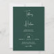 Diese elegante Hochzeitseinladung besticht durch ein minimalistisches Design, das mit einem schönen Schriftzeichen, einem Foto und einem Datum mit smaragdgrünem Hintergrund einhergeht. Darüber hinaus können Sie einen QR Code auf der Rückseite hinzufügen, um Ihre Gäste zu Ihrer Hochzeitsfeier zu leiten. Sie können die Einladung mit Ihrem Foto und QR-Code anpassen. Ersetzen Sie sie einfach auf der Rückseite durch Ihre im Feld "Personalisieren Sie diese Vorlage". Wenn Sie die Farbe ändern müssen, können Sie die Einladungskarte anpassen. Sie können die Einladung anpassen und personalisieren, um Ihren Hochzeitsbedürfnissen gerecht zu werden. Klicken Sie einfach auf die Einladung. Sie können diese Einladung ganz einfach mit Ihrem eigenen Text personalisieren und digital mit Ihren Gästen teilen - sei es durch Text, E-Mail oder Social Media. Wenn Sie es vorziehen, haben Sie auch die Möglichkeit, Ihren Gästen eine gedruckte Version zu schicken. Oder Sie können beides tun - senden Sie eine Digitalversion und folgen Sie einer gedruckten Kopie für eine persönliche Touch!