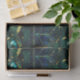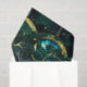 Elegantes smaragdgrünes Imitat aus Buntglas mit Goldakzenten mit blauem und grünem Hintergrund