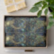 Elegantes smaragdgrünes Imitat aus Buntglas mit Goldakzenten mit blauem und grünem Hintergrund