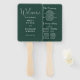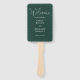 Dieser smaragdgrüne, elegante Script Hochzeitsprogramm Hand-Fan kann mit Ihren Informationen in der schicken Typografie personalisiert werden. Entwickelt von Thisisnotme©