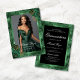 Emerald Green et Gold Birthday Photo Invitation. Cette élégante invitation présente un cadre vert glamour orné de fleurs enchanteresses, créant un design visuellement époustouflant qui ne manquera pas d'impressionner. Avec la possibilité d'insérer facilement votre propre photo dans le cadre, ainsi qu'un espace dédié à l'arrière pour ajouter tous les détails de l'événement, cette invitation assure une introduction personnalisée et élégante à votre célébration d'événement spécial.