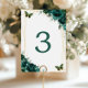 Emerald Green Floral Gold Butterflies Wedding Tischnummer