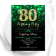 80. Geburtstagsfeier Einladung. Elegantes smaragdgrün und schwarz Design mit Imitaten Glitzer Gold. Mit stilvollen Diamanten, Bokeh-Leuchten und Skript-Schriftart. Männer oder Frauen laden ein. Ideal für eine stilvolle Geburtstagsparty. Personalisieren Sie Ihre persönlichen Daten. Nachricht, wenn Sie weitere Anpassungen benötigen. Gedruckte Zazzle Einladungen oder Sofortdownload digitalen druckbaren Vorlage.