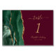 Emerald Green Gold Agate Burgundy Wedding Tischnummer