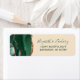 Das elegante, moderne und mit Imitaten bestickte Retourenlabel besticht durch eine smaragdgrüne Aquarellgrenze mit vergoldetem Glitzer in der links Hand. Der anpassbare Text kombiniert grüne Schrift und Copperplate-Schriftart auf einem Champagner-Hintergrund.