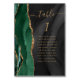 Der links Rand dieser eleganten, modernen Hochzeitskarte mit einer smaragdgrünen Aquarellgrenze, die mit Imitaten mit goldenem Glitzer bestickt ist, zeichnet sich durch einen smaragdgrünen Aquarell aus. Das Wort "Tabelle" erscheint in goldfarbenem Schriftskript auf einem schwarzen Aquarellhintergrund. Fügen Sie die Namen Ihrer Gäste hinzu, die jeder Tabelle zugeordnet sind.