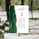 Der links Rand dieser eleganten, modernen Hochzeitskarte mit einer smaragdgrünen Aquarellgrenze, die mit Imitaten mit goldenem Glitzer bestickt ist, zeichnet sich durch einen smaragdgrünen Aquarell aus. Das Wort "Tabelle" erscheint in einem handgeschriebenen Schriftsatz aus Holzkohle auf weißem Hintergrund. Fügen Sie die Namen Ihrer Gäste hinzu, die jeder Tabelle zugeordnet sind.