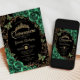 Smaragdgrün, goldschwarz Quinceanera Feier Einladung. Features, Skript-Schriftart, Goldschmetterlinge, Aquarellfarben-Rose und Tiara. Ideal für eine elegante Glasfeier im Prinzessinnstil. Personalisieren Sie Ihre persönlichen Daten. Gedruckte Zazzle Einladungen oder Sofortdownload digitalen druckbaren Vorlage.