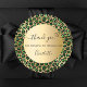 Mit diesen eleganten smaragdgrünen und goldenen klassischen Rundaufklebern mit feinem Leoparden und gepflegtem Hintergrund bedanken Sie sich stilvoll. Diese Aufkleber sind perfekt zum Abdichten von Umschlägen, Geschenktaschen oder Gastgeschenken geeignet und können mit einem Namen personalisiert werden, indem Sie Ihren Dankeschön-Noten eine persönliche Touch hinzufügen. Diese stilvollen Aufkleber eignen sich für jeden Anlass und verbinden Eleganz mit einem lustigen, wilden Design.