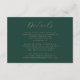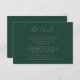 Diese elegante, moderne Kapseleinhängekarte für Hochzeitsdetails besticht durch goldfarbenen Text auf smaragdgrünem Hintergrund. Der Titel erscheint in einem schönen Handschriftenskript, mit anpassbarem Text unten in serifenlosen Sans-Schriftart. Die Rückseite ist stetig grün.