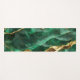 This elegant yoga mat features a rich emerald green design with a luxurious gold rock texture accent background.