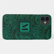 Fügen Sie Ihre erste, um diese smaragdgrüne mit Monogramm Handy-Gehäuse anpassen. Ein stylisches, einfaches Quadratmonogramm sitzt auf einem schwarzen botanischen Blattmuster.