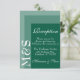 Einfache, moderne, schicke Hochzeitszitkarte für Brautpaare, die ihre Zeremonien in modernem Stil und smaragdgrüner Farbe bewundern. Die schicke Hochzeitssuite verfügt über einen modernen, weißen Schriftart mit Monogramm-Initialen.