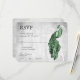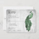 Senden Sie Ihren Gästen eine einfache und elegante Emerald Green Peacock Wedding RSVP Card mit Ihrer Einladung. Das Design der Antwortkarte besticht durch einen eleganten Pfau vor zarten Blättern und grundem Hintergrund. Personalisieren Sie Ihre Einstellungen mit dem Datum der Antwort und den Menüoptionen. Mit diesem Design sind auch weitere Hochzeitswaren erhältlich.